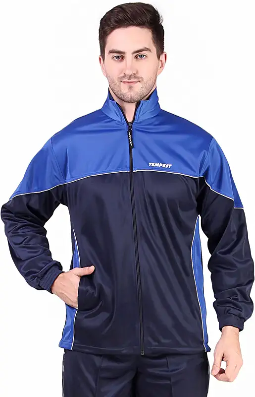 Long-sleeved navy waterproof jacket in thin, polyester fabric with a soft mesh inside. The durable water-repellent finish means you’ll be kept comfortable and protected when out in all weathers.